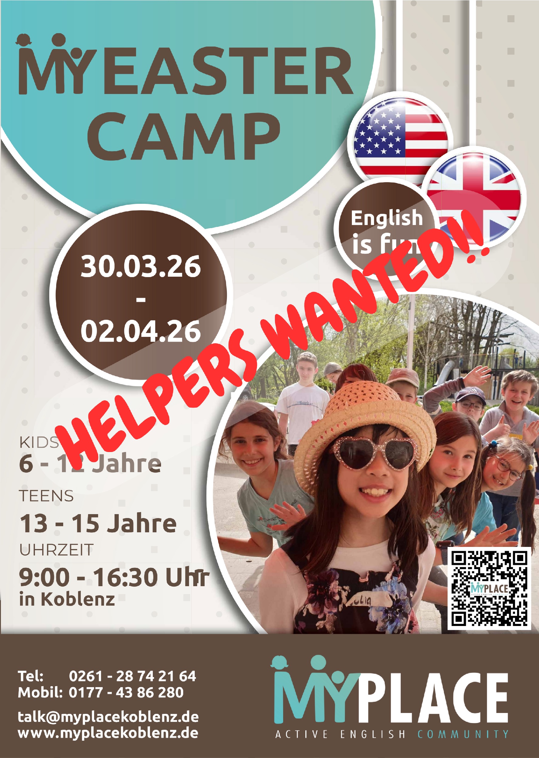 Rund um das Thema Ostern haben wir für Ihre Kinder abwechslungsreiche Sprachspiele und Aktionen geplant. Die Kids werden in kleine, altersgerechte Gruppen aufgeteilt und können an unterschiedliche Angeboten teilnehmen. Hier warten auf jeden Fall eine Menge Spaß & Action auf die Kids.